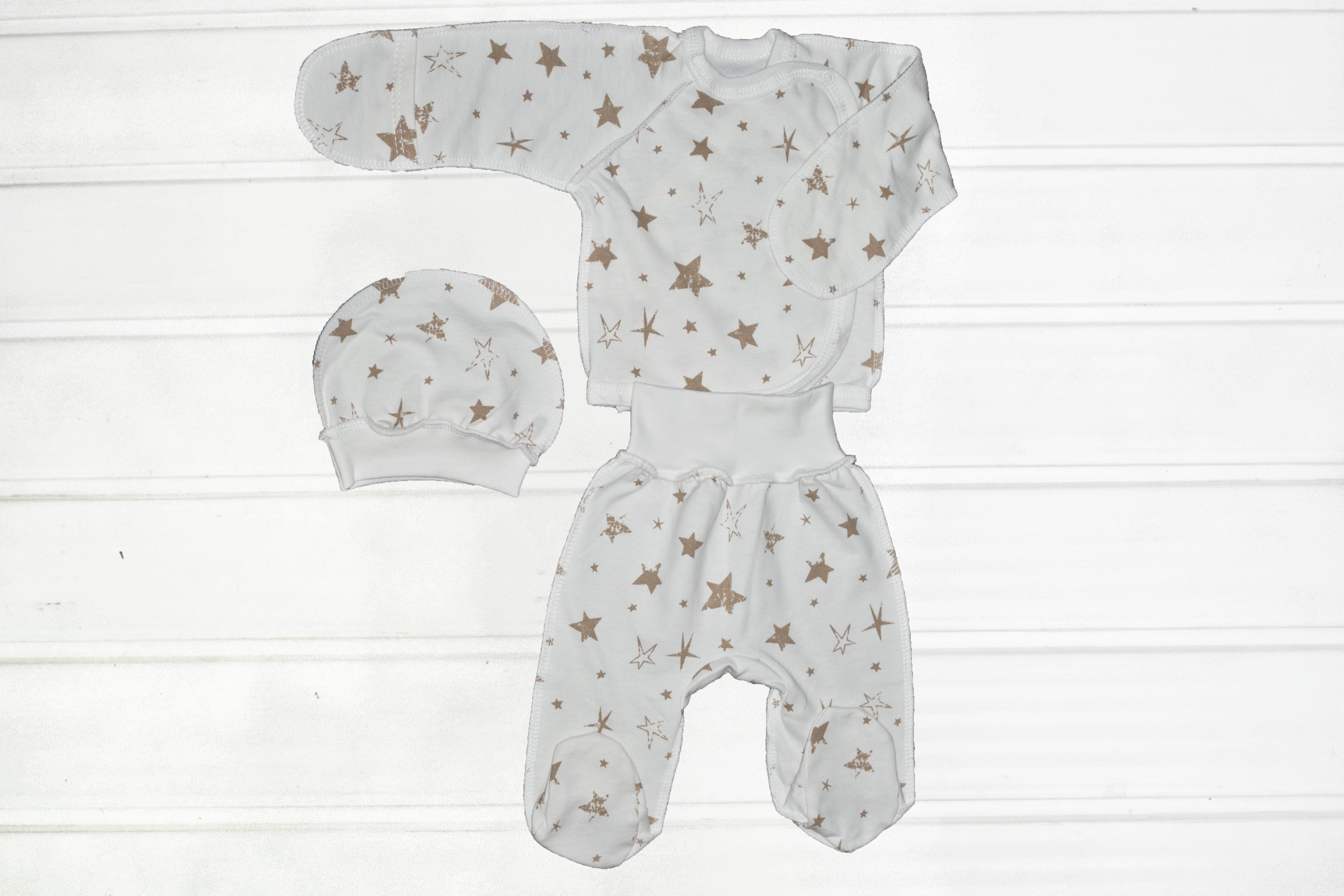 Теплий ясельний комплект пошитий з теплого бавовняного полотна начос піньє. Складається з розпашонки, повзунків і шапочки. Цей комплект дуже зручний і ідеально підійде Вашому малюкові.