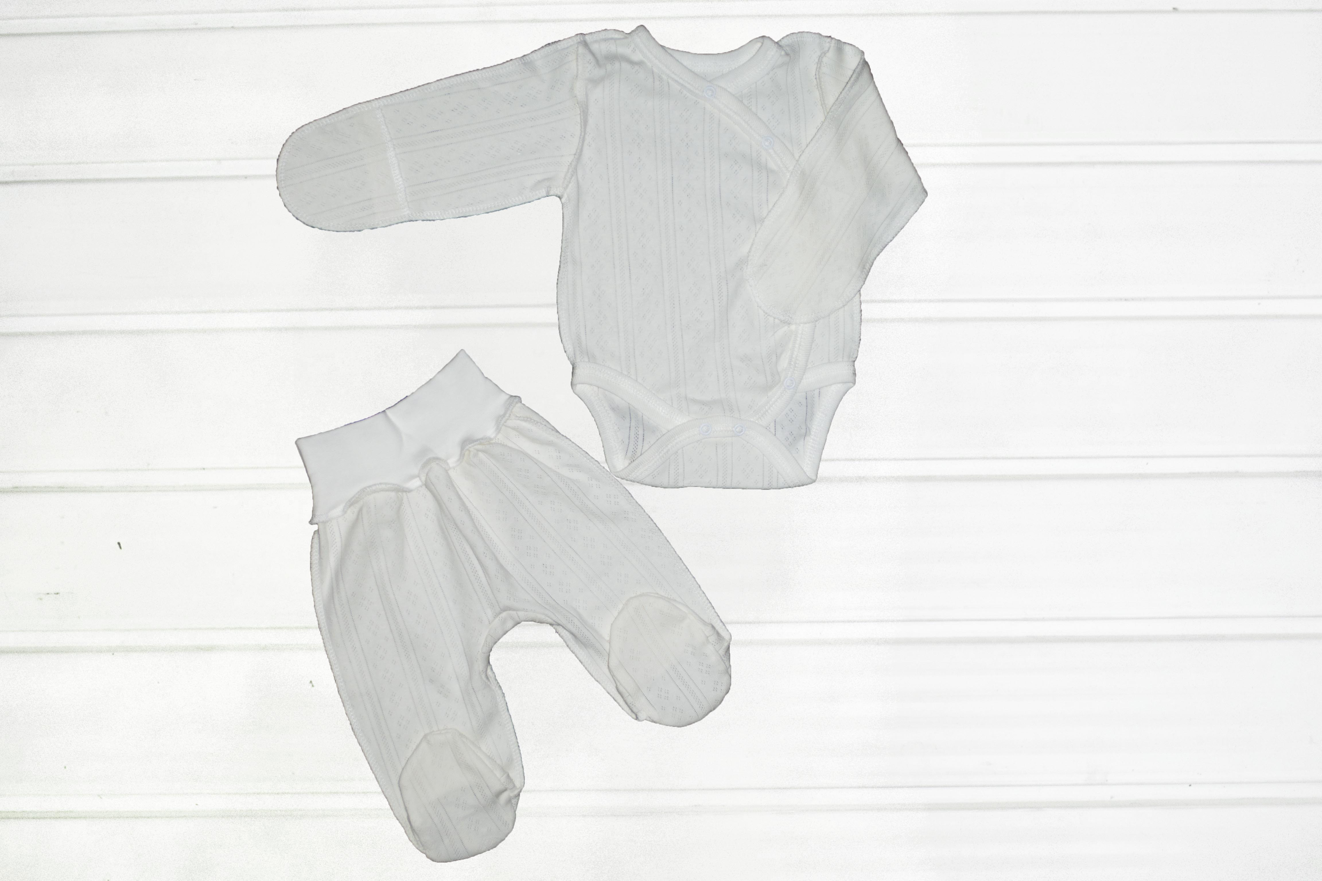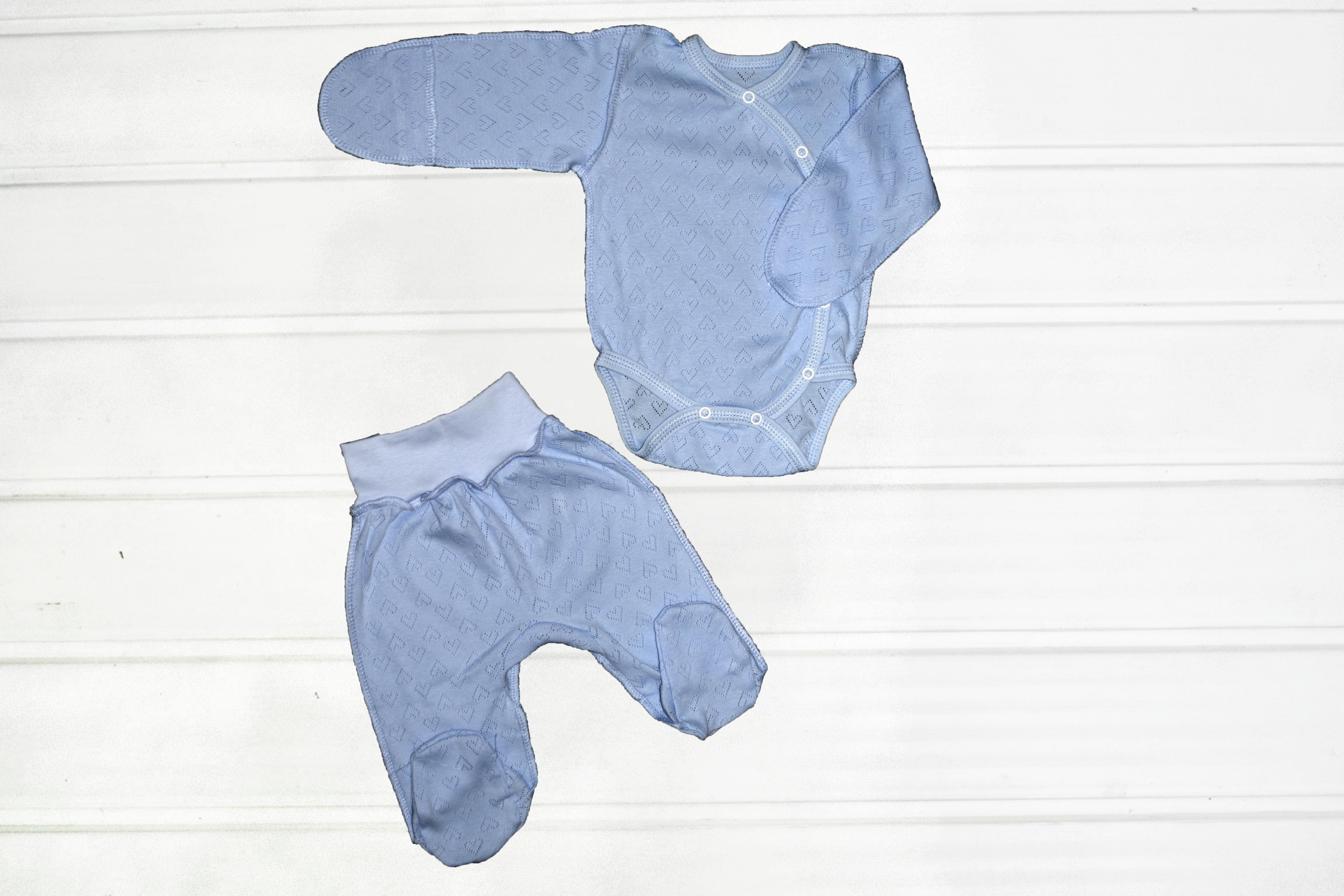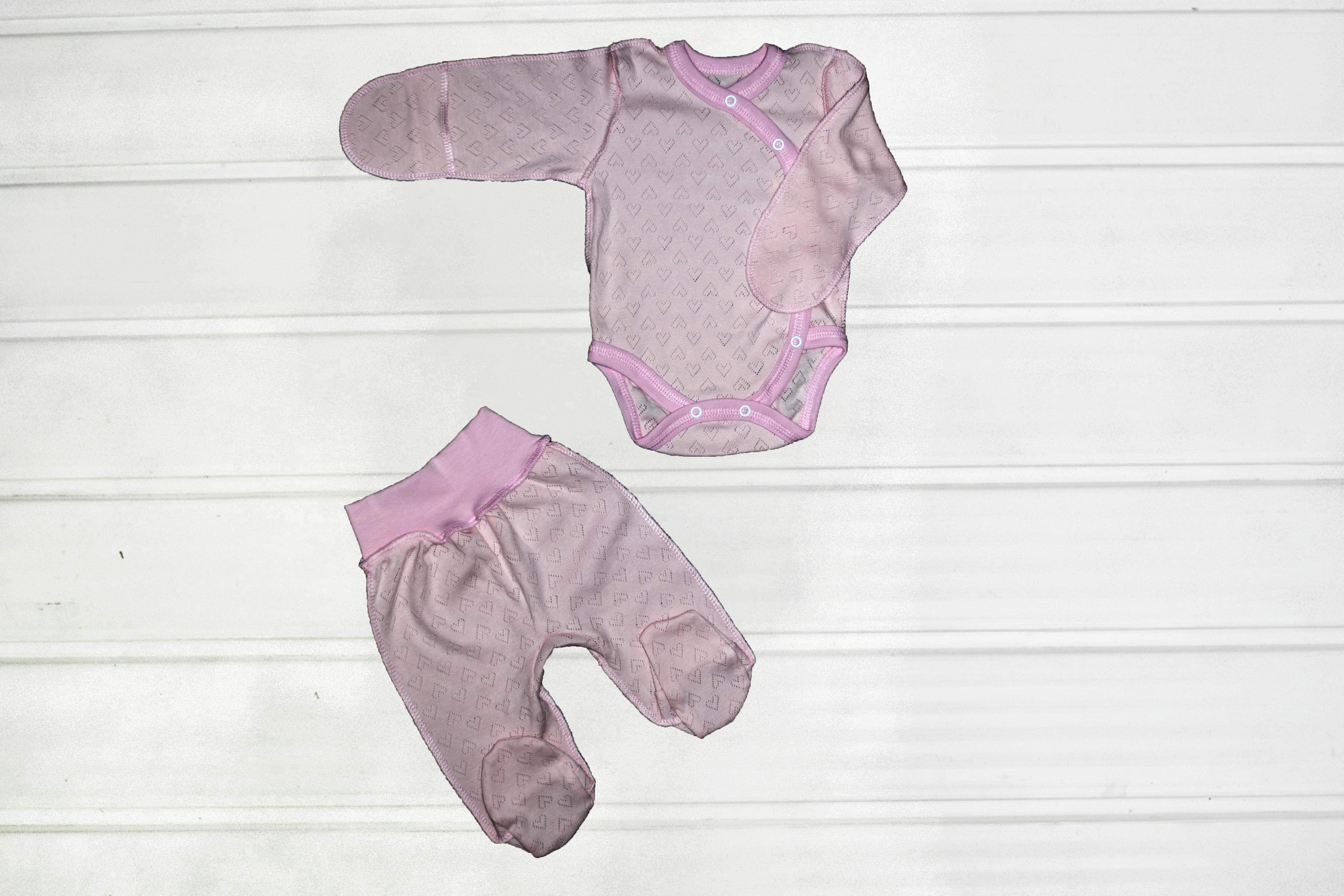 Красивий і зручний ясельний комплект пошитий з якісного полотна трансфер.Складається комплект з боді і повзунків-євриків.
